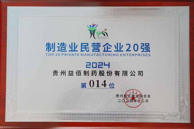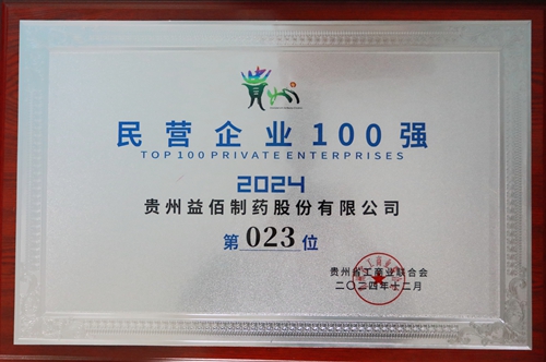 益佰制藥榮膺2024年貴州省企業(yè)百強(qiáng)